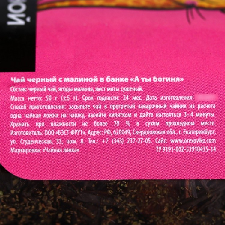 Чай чёрный «А ты - богиня» с малиной, 50 г. в Минске в ТЦ Силуэт на 2м этаже ✓Упаковка ✓Еда с приколами ✓Приятные цены ✓Косметика. Подарочная упаковка, декор, еда с приколами, открытки, бумага, пакеты, коробки, бирки, бумажный наполнитель и многое другое