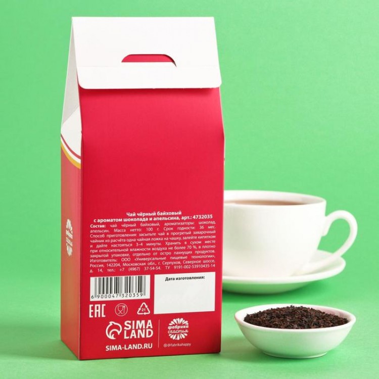Состав: чай черный байховый, ароматизаторы: шоколад, апельсин.
