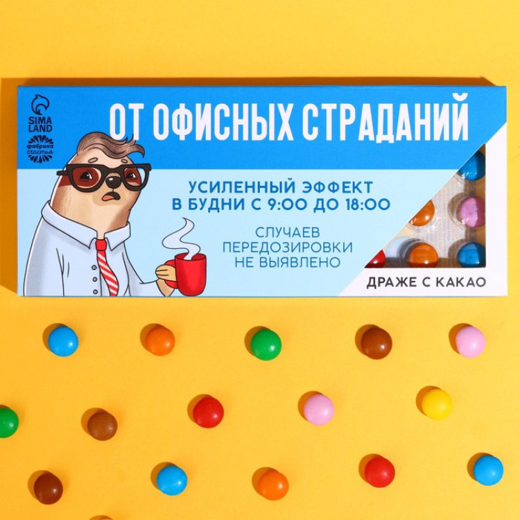 Драже шоколадное «От офисных страданий» в блистере, 20 г. Еще сотни сладких и других подарков на нашем сайте и в инстаграм (@sladosti_s_prikolom) ✈Минск, ТЦ Силуэт, 2й этаж, ряд 6 павильон 4. Ежедневно с 11:30 до 20:00 без обеда. Мтс +375295540444. По Беларуси отправляем европочтой и белпочтой