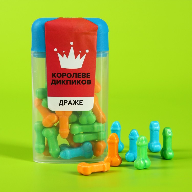 Драже в банке «Королева дикпиков», 20 г. ✓Скидка подписчикам инстаграм sladosti_s_prikolom 10% ✈Магазин в ТЦ Силуэт и доставка почтой по РБ. Прямой поставщик, лучшие цены и выбор. Большой выбор сладкого драже в разных вариантах оригинальной позитивной упаковки. Собираем подарочные наборы.