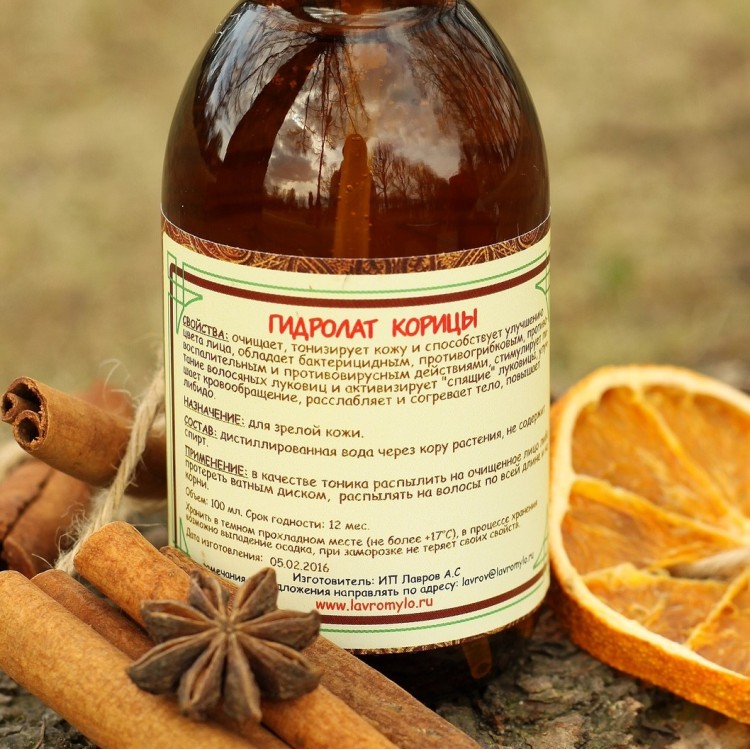 Натуральный гидролат Корицы от Мастерская Лавровых в магазине aromagiya.by ✓Богатые работающие составы ✈Самовывоз и доставка ✈Почтой по РБ. Душистая вода Корицы очищает и тонизирует кожу, разглаживает морщинки, улучшает цвет лица, за счет стимулирования микроциркуляции крови устраняет бледность кожи. Для лечения простуды, при расстройстве желудка