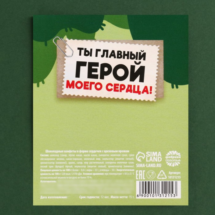 Конфета шоколадная на открытке «С 23 Февраля», 15 г.