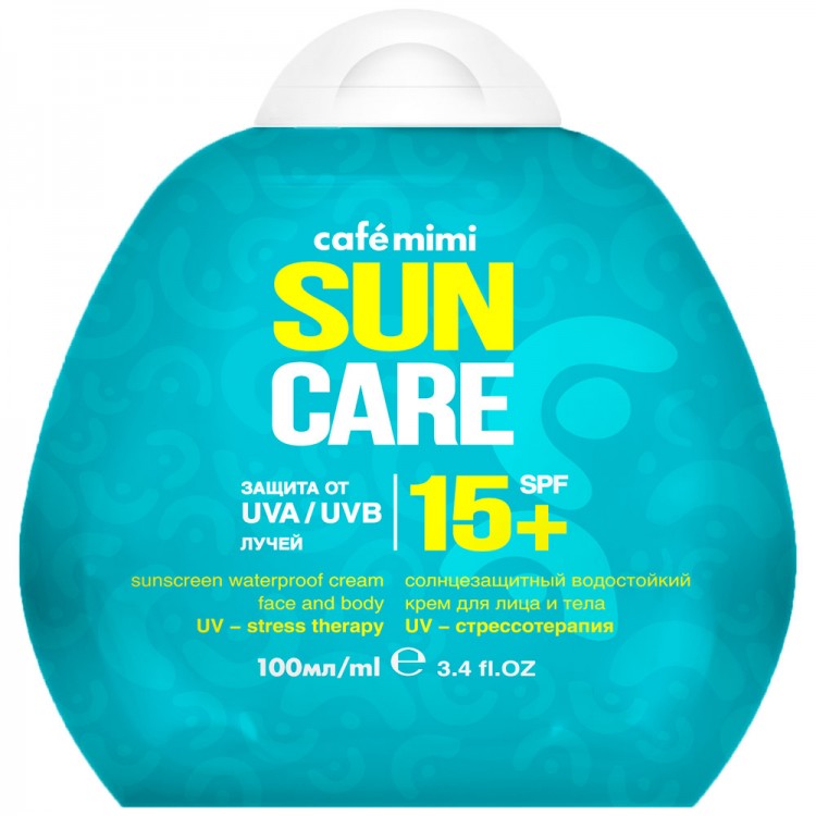 Солнцезащитный крем с санблоком SPF15+ Sun Care бренда Cafemimi обеспечивает защиту от UVA/UVB лучей в городских условиях или в пасмурную погоду на пляже. Дополнительные компоненты позволяют смягчать кожу, предотвращая возникновение сухости и шелушения. Средство отличается водостойкостью, содержит витамины Е и F.