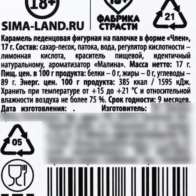 Состав: сахар-песок, патока, вода, регулятор кислотности - лимонная кислота, краситель пищевой, идентичный натуральному, ароматизатор "Малина".