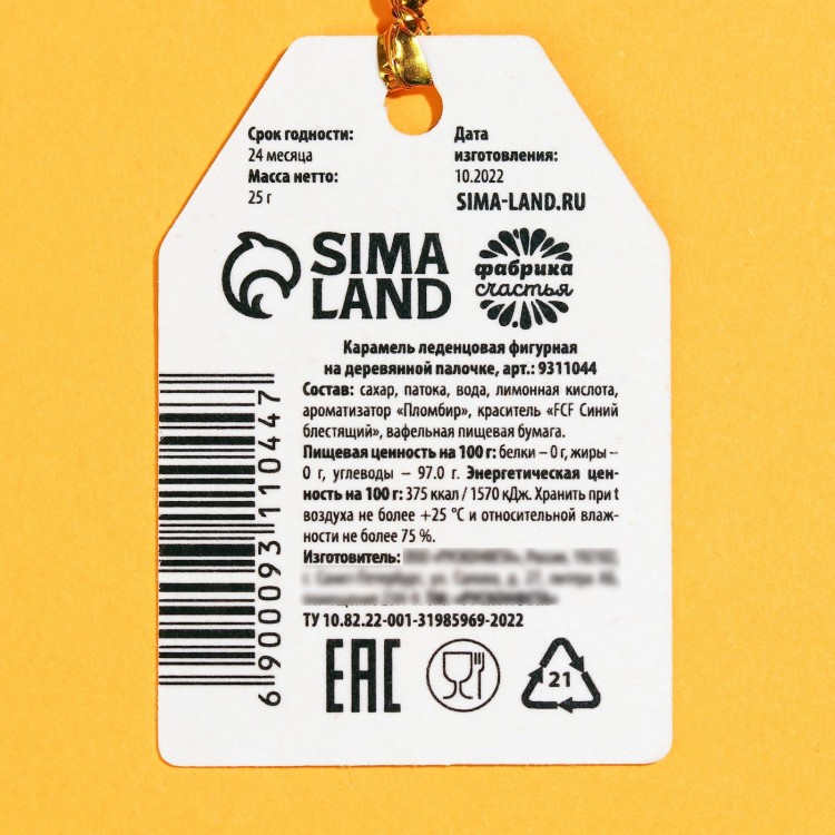 Состав: сахар, патока, вода, лимонная кислота, ароматизатор «Пломбир», вафельная пищевая бумага.