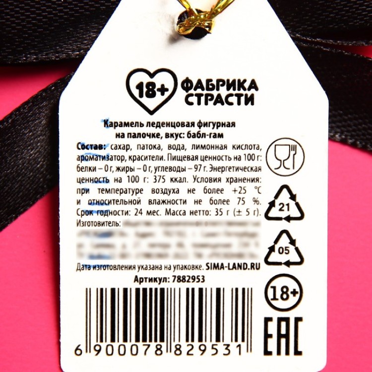 Состав: сахар, патока, вода, лимонная кислота, ароматизатор, красители.