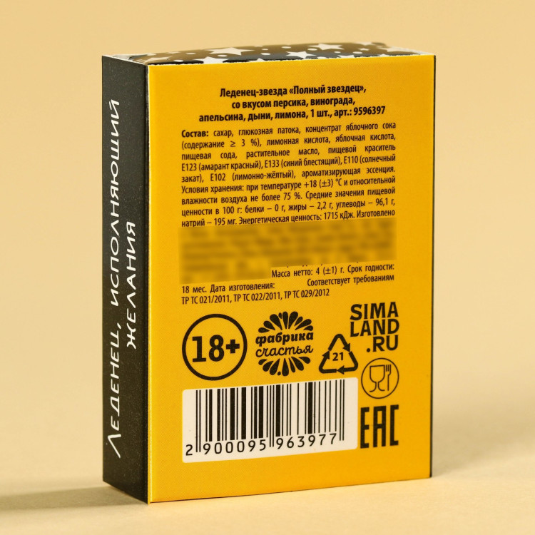 Леденец-звезда в коробке «Полный звездец», 1 шт.