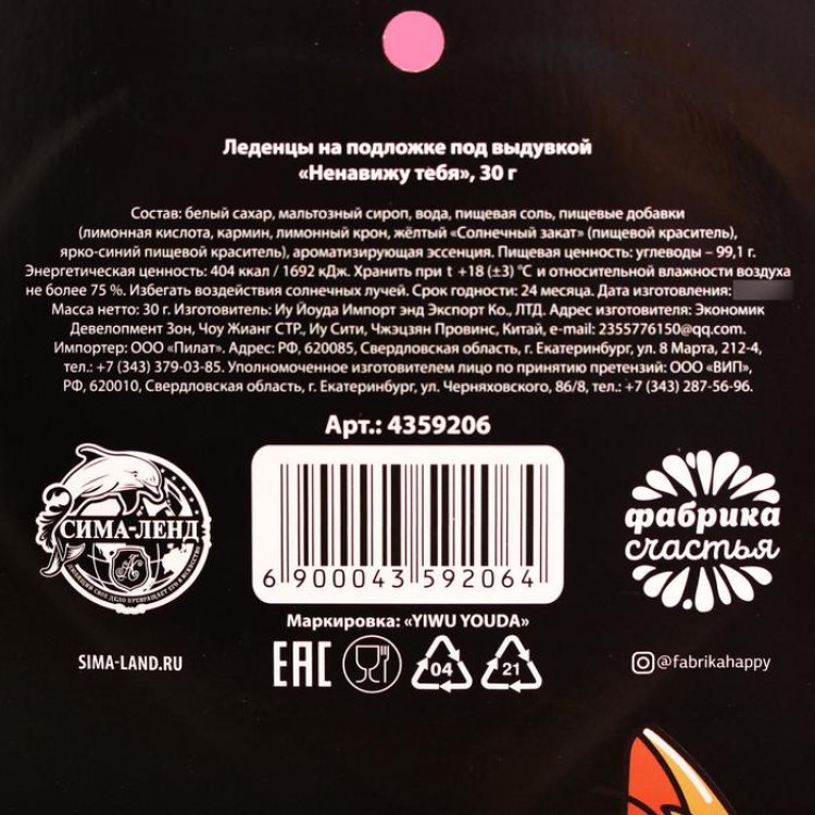 Леденцы «Ненавижу тебя»: 40 г. в магазине aromagiya.by ✓Скидка подписчикам инстаграм sladosti_s_prikolom 10% ✈Магазин в ТЦ Силуэт и доставка почтой по РБ. Прямой поставщик, лучшие цены и выбор. Собираем красивые подарочные боксы собственных дизайнов в специально разработанную под сладости упаковку.