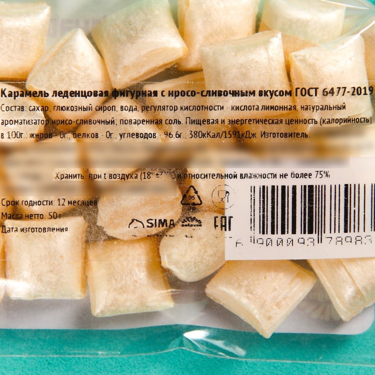 Состав: сахар, глюкозный сироп, вода, регулятор кислотности- кислота лимонная, натуральный ароматизатор ирисо- сливочный, краситель: кармины, бета-апо-8'-каротиновый альдегид, поваренная соль.