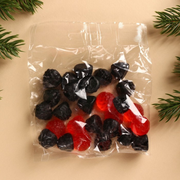 Состав: глюкозный сироп, сахар, агент желирующий: желатин, регулятор кислотности: лимонная кислота (Е330), молочная кислота (Е270), ароматизаторы: малина, ежевика, барбарис, красители пищевые: кармуазин (Е122), понсо 4R (Е124), индигокармин (Е132), чёрный блестящий PN (Е151), глазирователь: растительное масло, карнаубский воск.