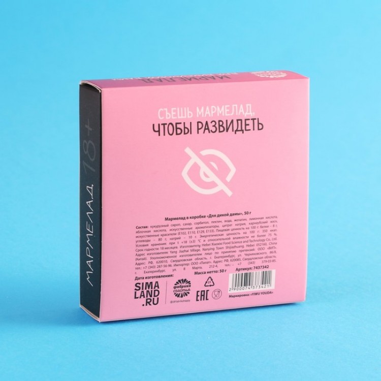 Мармелад в коробке "Для дикой дамы", 50 г. в магазине aromagiya.by ✓Скидка подписчикам инстаграм sladosti_s_prikolom 10% ✈Магазин в ТЦ Силуэт и доставка почтой по РБ. Прямой поставщик, лучшие цены и выбор. Собираем красивые подарочные боксы собственных дизайнов в специально разработанную под сладости упаковку.