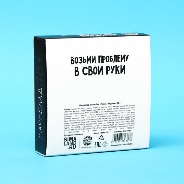 Мармелад в коробке "Планы на день", 50 г. в магазине aromagiya.by ✓Скидка подписчикам инстаграм sladosti_s_prikolom 10% ✈Магазин в ТЦ Силуэт и доставка почтой по РБ. Прямой поставщик, лучшие цены и выбор. Собираем красивые подарочные боксы собственных дизайнов в специально разработанную под сладости упаковку.