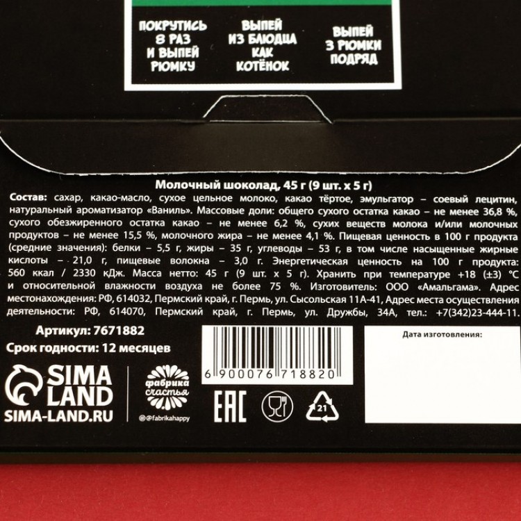 Молочный шоколад 9 шт. в конверте "Фанты-выпиванты", 45 г. ( 9 шт. х 5 г.) в магазине aromagiya.by ✓Скидка подписчикам инстаграм sladosti_s_prikolom 10% ✈Магазин в ТЦ Силуэт и доставка почтой по РБ. Прямой поставщик, лучшие цены и выбор. Собираем красивые подарочные боксы собственных дизайнов в специально разработанную под сладости упаковку.