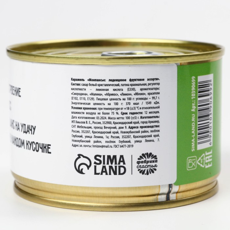 Состав: сахар белый кристаллический, патока крахмальная, регулятор кислотности - лимонная кислота (Е330), ароматизаторы: "Смородина", "Малина", "Абрикос", "Лимон", "Яблоко", красители (Е102, Е110, Е129).