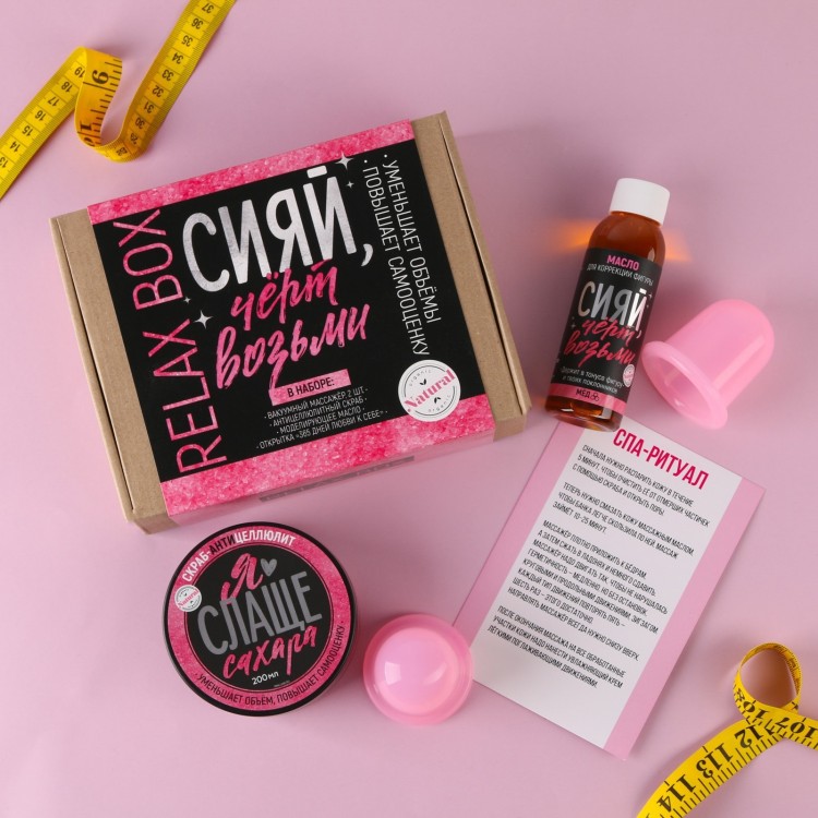 Набор антицеллюлитный с вакуумным массажером "Сияй, черт возьми", массажер, скраб, масло в магазине aromagiya.by ✓Скидка подписчикам инстаграм aromagiya.by 10% ✈Магазин в ТЦ Силуэт и доставка почтой по РБ. Эта продукция создана для поднятия настроения, позитивных эмоций, подарков! Из нее мы собираем очень красивые подарочные боксы для девушек и мужчин и они действительно выглядят эффектн
