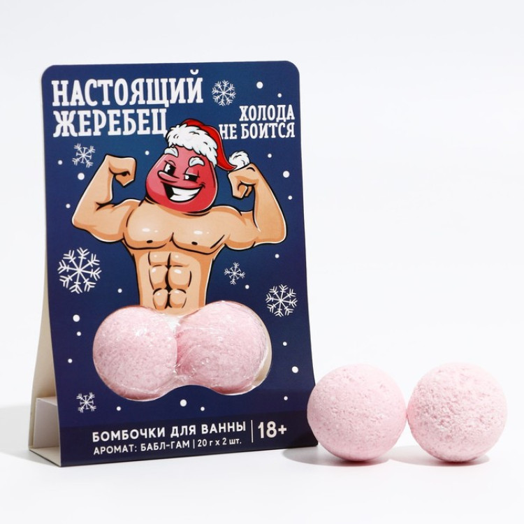 Набор "Настоящий жеребец", бомбочки для ванны 2 шт по 20 гр, аромат бабл гам 18+.