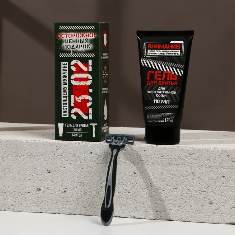 Набор "Ценный подарок", успокаивающий гель для бритья 110 мл и бритва.