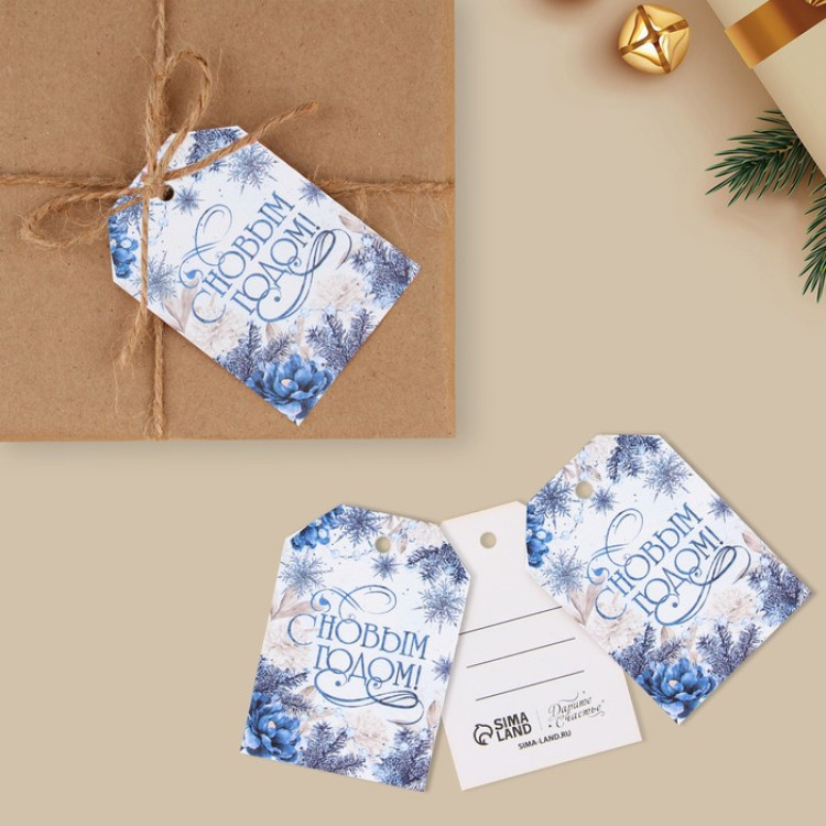 Открытка-шильдик на подарок «С Новым годом!», акварельный картон, 5 х 7 см.