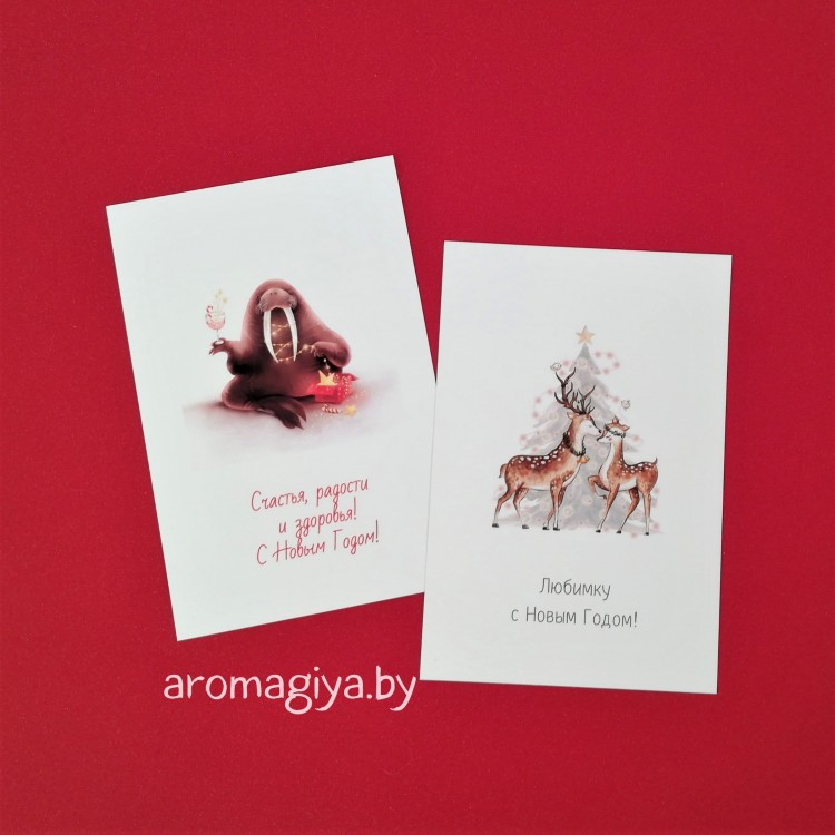 Новогодние открытки собственного производства Арт.655-656 в магазине aromagiya.by ✓Огромный выбор ✓Низкие цены ✓Свое производство ✈Самовывоз и доставка ✈Можно почтой. Открытки на Новый Год с добрым и черным юмором, нейтральные открытки, открытки на Рождество. Каждая открытка в защитной пленке. С конвертами и без конвертов. Интересные открытки в огромном ассортименте, производство открыток.