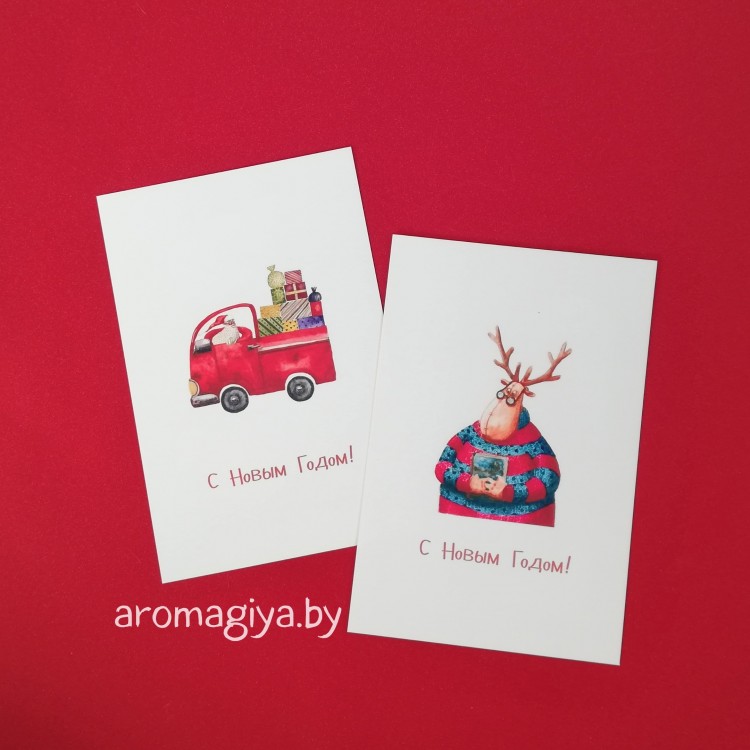 Новогодние открытки собственного производства Арт.683-684 в магазине aromagiya.by ✓Огромный выбор ✓Низкие цены ✓Свое производство ✈Самовывоз и доставка ✈Можно почтой. Открытки на Новый Год с добрым и черным юмором, нейтральные открытки, открытки на Рождество. Каждая открытка в защитной пленке. С конвертами и без конвертов. Интересные открытки в огромном ассортименте, производство открыток.