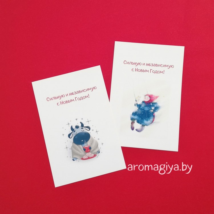 Новогодние открытки собственного производства Арт.715-716 в магазине aromagiya.by ✓Огромный выбор ✓Низкие цены ✓Свое производство ✈Самовывоз и доставка ✈Можно почтой. Открытки на Новый Год с добрым и черным юмором, нейтральные открытки, открытки на Рождество. Каждая открытка в защитной пленке. С конвертами и без конвертов. Интересные открытки в огромном ассортименте, производство открыток.