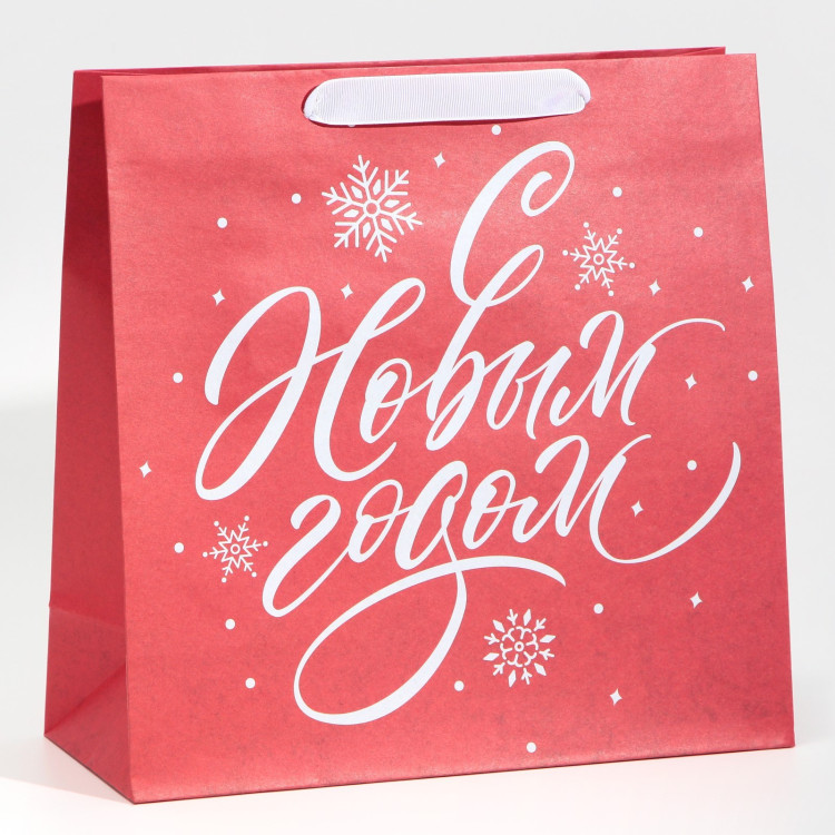 Пакет крафтовый квадратный «Новогодний», 30 × 30 × 12 см.