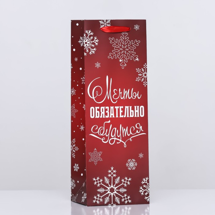 Пакет ламинированный под бутылку "Мечты обязательно сбудутся",13 х 36 х 10 см.