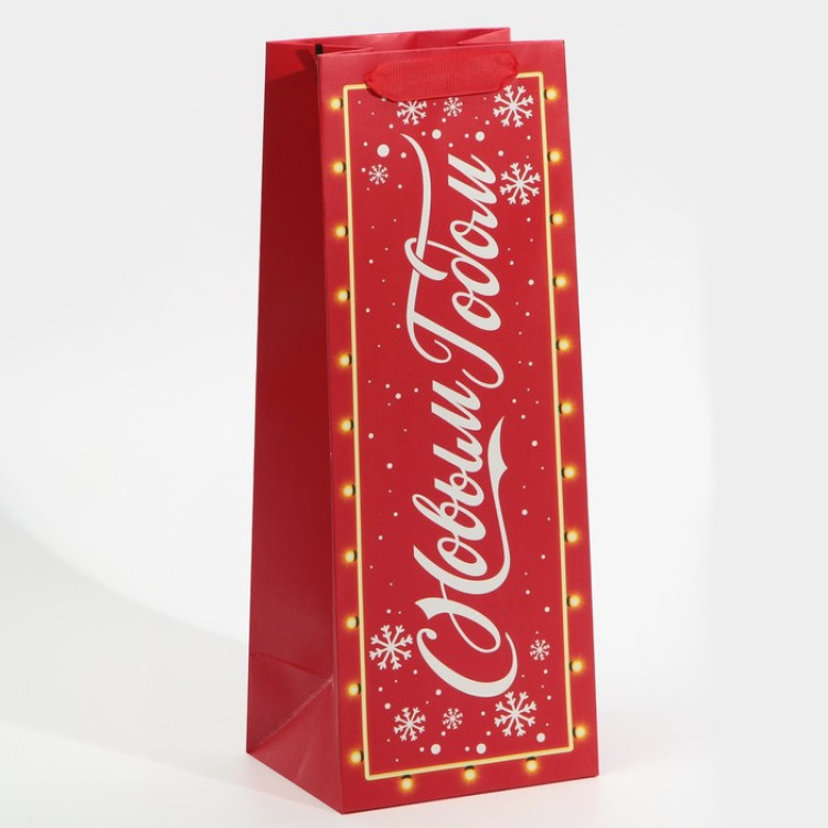 Пакет под бутылку «С Новым годом!», 13 х 36 х 10 см.