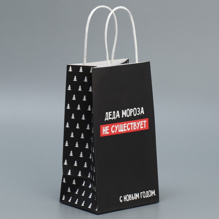 Пакет подарочный крафтовый «Деда Мороза нет», 12 × 21 × 9 см.