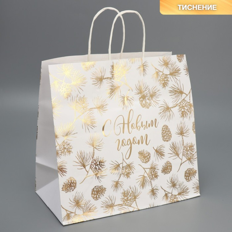 Пакет подарочный крафтовый Gold, 32 × 28 × 15 см.