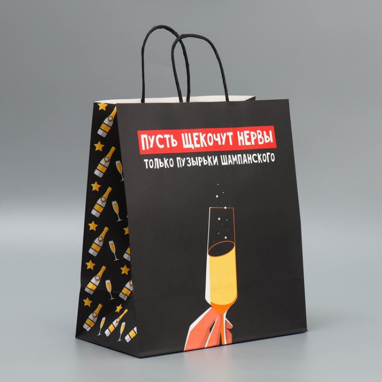 Пакет подарочный крафтовый «Шампанское», 28 × 32 × 15 см.