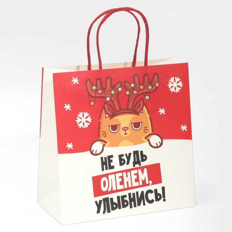 Пакет подарочный «Не будь оленем», 22 × 22 × 11 см.