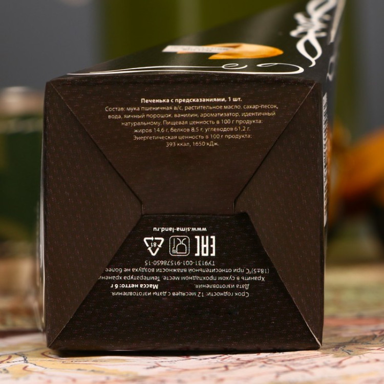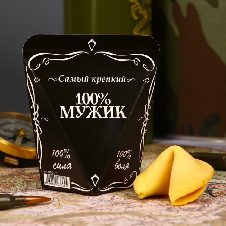 Это печенье представляет собой небольшое хрустящее лакомство, в которое запечен листочек с предсказанием. Дизайнерская упаковка точно порадует любого мальчика или мужчину своим внешним видом в День защитника Отечества. Печенье может стать не только вкусным десертом, но и отличным вариантом подарка близкому человеку. Он обязательно оценит неординарный подход, а оригинальное предсказание-сюрприз оставит после себя массу положительных эмоций!