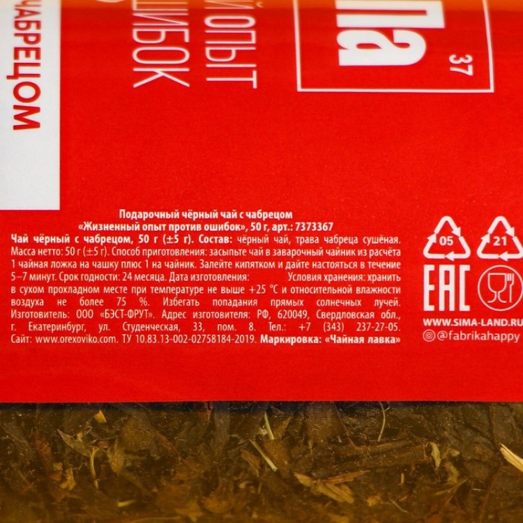 Подарочный чёрный чай с чабрецом «Жизненный опыт против ошибок», 50 г. в магазине aromagiya.by ✓Скидка подписчикам инстаграм sladosti_s_prikolom 10% ✈Магазин в ТЦ Силуэт и доставка почтой по РБ. Прямой поставщик, лучшие цены и выбор. Собираем красивые подарочные боксы собственных дизайнов в специально разработанную под сладости упаковку.