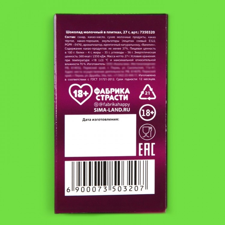 Подарочный шоколад «Безопасное удовольствие», 27 г. в магазине aromagiya.by ✓Скидка подписчикам инстаграм sladosti_s_prikolom 10% ✈Магазин в ТЦ Силуэт и доставка почтой по РБ. Прямой поставщик, лучшие цены и выбор. Собираем красивые подарочные боксы собственных дизайнов в специально разработанную под сладости упаковку.