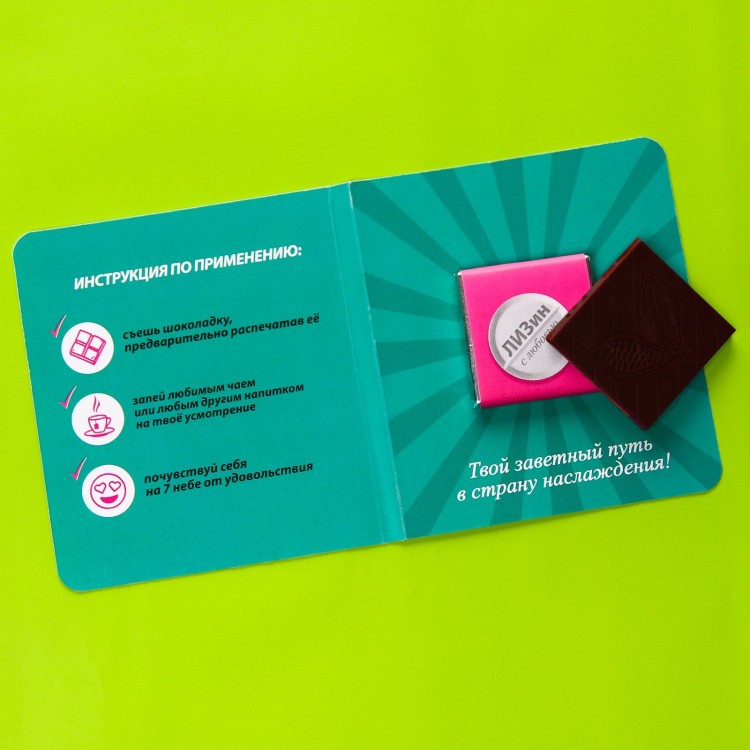 Шоколад молочный «Лизин», в открытке, 5 г. от Фабрика счастья в магазине aromagiya.by ✓Скидка подписчикам инстаграм sladosti_s_prikolom 10% ✈Магазин в ТЦ Силуэт и доставка почтой по РБ. Прямой поставщик, лучшие цены и выбор. Собираем красивые подарочные боксы собственных дизайнов в специально разработанную под сладости упаковку.