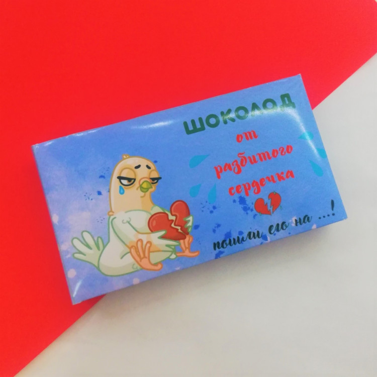 Шоколад молочный малина-манго "От разбитого сердечка", 43г. ✓Скидка подписчикам инстаграм sladosti_s_prikolom 10% ✈Магазин в ТЦ Силуэт и доставка почтой по РБ. Прямой поставщик, лучшие цены и выбор. Большой выбор шоколада, конфет, леденцов, печенья, мармелада в разных вариантах оригинальной позитивной упаковки.