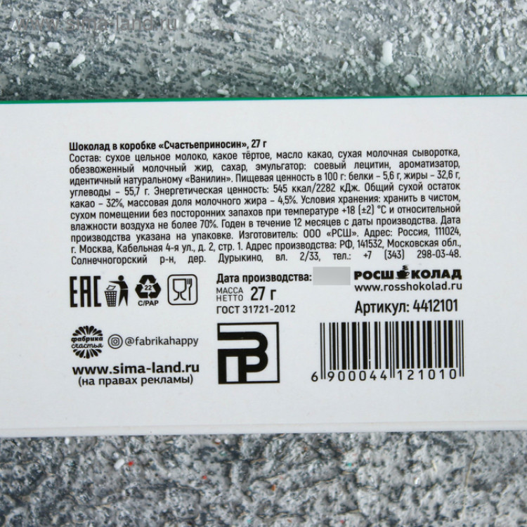 Масса нетто: 27 г.