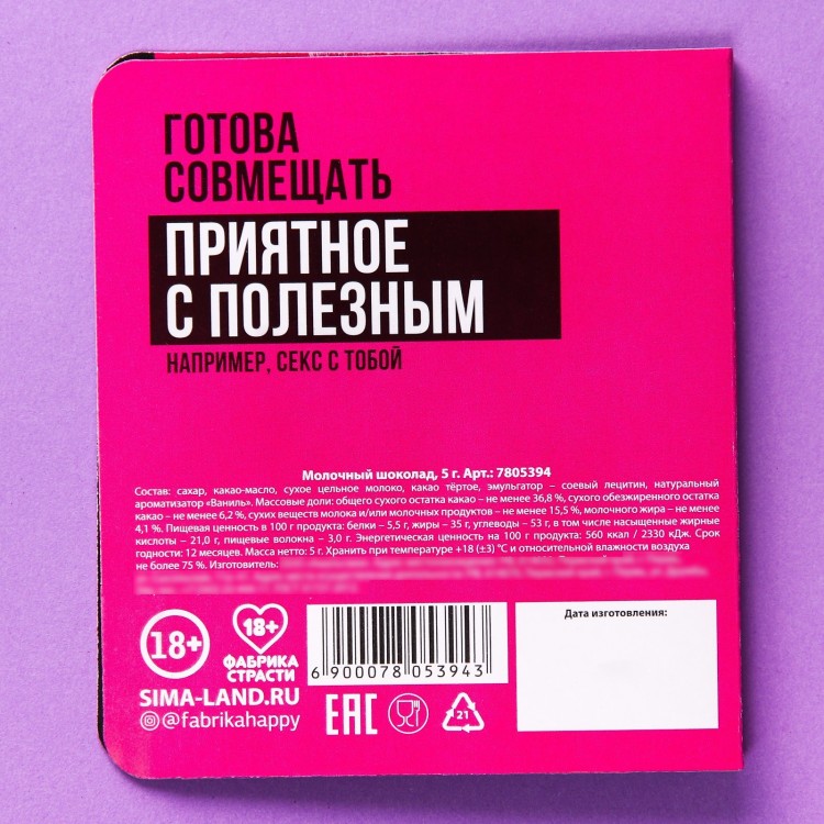 Шоколад молочный «Хочется сладенького», в открытке, 5 г. от Фабрика счастья в магазине aromagiya.by ✓Скидка подписчикам инстаграм sladosti_s_prikolom 10% ✈Магазин в ТЦ Силуэт и доставка почтой по РБ. Прямой поставщик, лучшие цены и выбор. Собираем красивые подарочные боксы собственных дизайнов в специально разработанную под сладости упаковку.