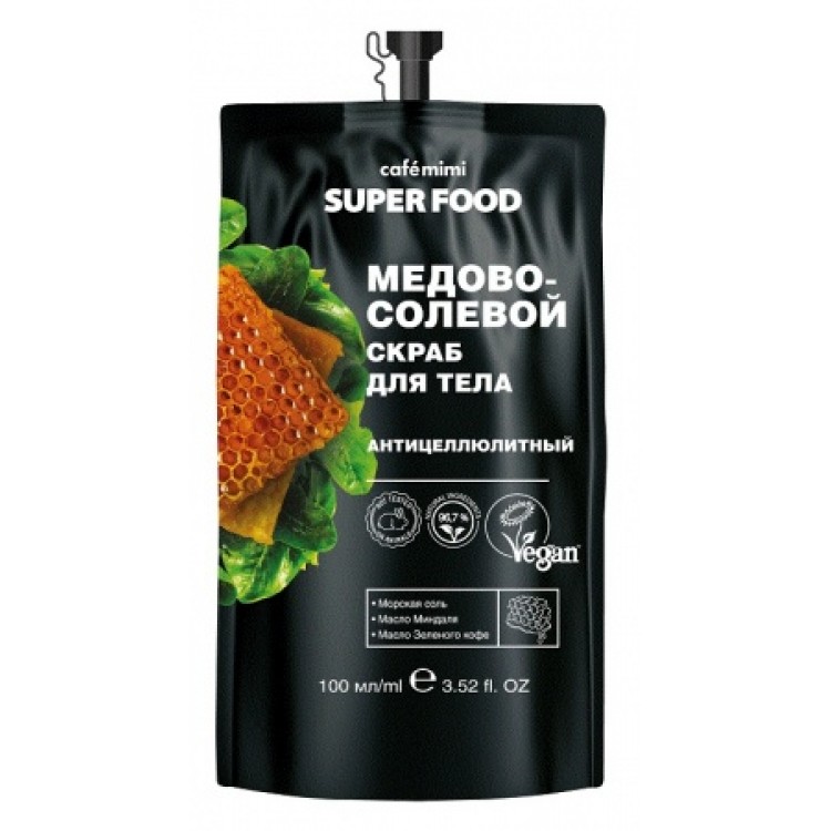 Скраб для тела медово-солевой Антицеллюлитный Cafe mimi в магазине aromagiya.by ✓Приятные ароматы ✓Яркий дизайн ✓Супер-цена ✈Самовывоз и доставка ✈Почтой по РБ. 1. Глубоко очищает и отшелушивает кожу 2. Насыщает минералами и микроэлементами 3. Придает упругость и эластичность
