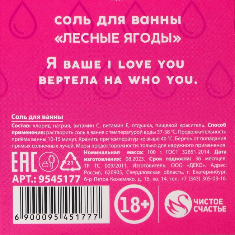 Соль для ванны "Слёзы бывших", аромат лесные ягоды, 100 г.