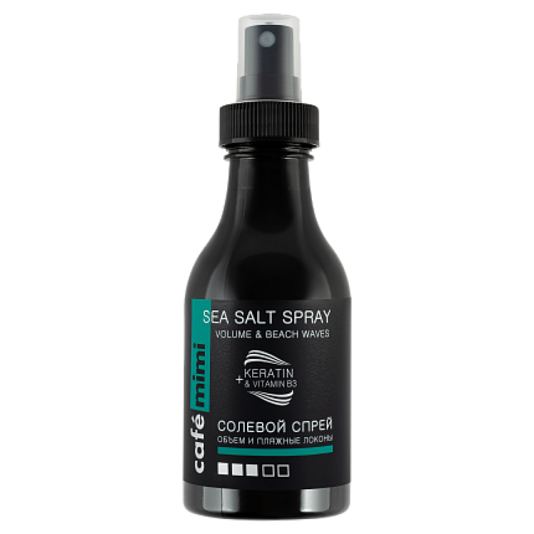 Солевой спрей "Объем и пляжные локоны" CAFÉ MIMI с минералами морской соли - идеальное средство для создания непринужденных объемных укладок в «пляжном» стиле. Спрей придает волосам плотность и объем, создает идеальный пляжный образ и обеспечивает легкую надежную фиксацию.
