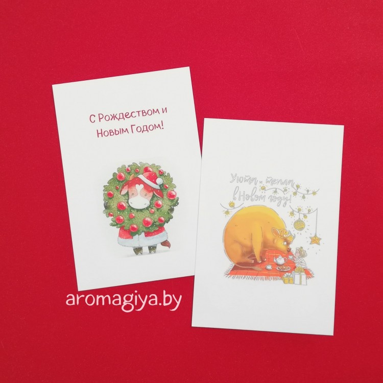 Новогодние открытки собственного производства Арт.713-714 в магазине aromagiya.by ✓Огромный выбор ✓Низкие цены ✓Свое производство ✈Самовывоз и доставка ✈Можно почтой. Открытки на Новый Год с добрым и черным юмором, нейтральные открытки, открытки на Рождество. Каждая открытка в защитной пленке. С конвертами и без конвертов. Интересные открытки в огромном ассортименте, производство открыток.