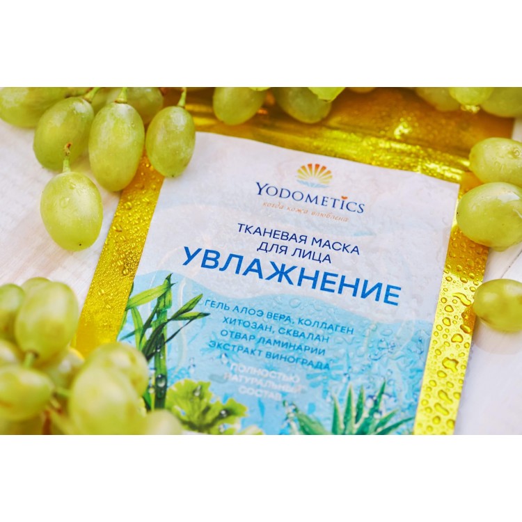 Высокоэффективная натуральная тканевая маска для лица Увлажняющая от Yodometics в магазине aromagiya.by ✓Скидка 10% ✈Самовывоз и доставка ✈Почтой по РБ. Маска содержит хитозан и алоэ вера, которые активно удерживают влагу в коже. Натуральный оливковый сквалан - мощный антиоксидант, который препятствует потере влаги, защищает кожу.