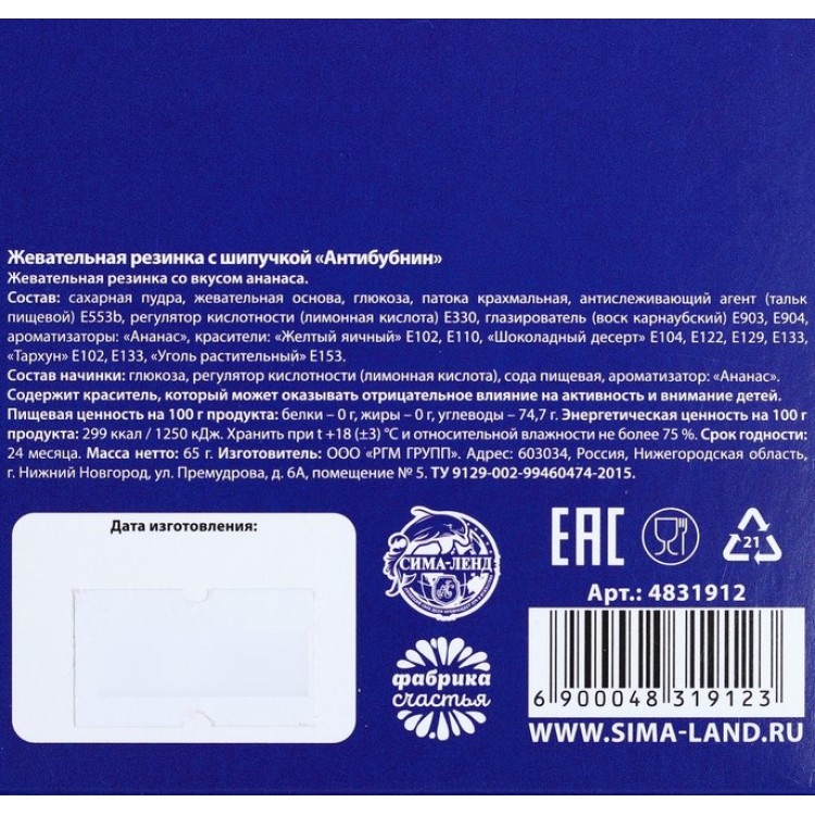 Жевательная резинка с шипучкой «Антибубнин», 65 г. в магазине aromagiya.by ✓Скидка подписчикам инстаграм sladosti_s_prikolom 10% ✈Магазин в ТЦ Силуэт и доставка почтой по РБ. Прямой поставщик, лучшие цены и выбор. Собираем красивые подарочные боксы собственных дизайнов в специально разработанную под сладости упаковку.