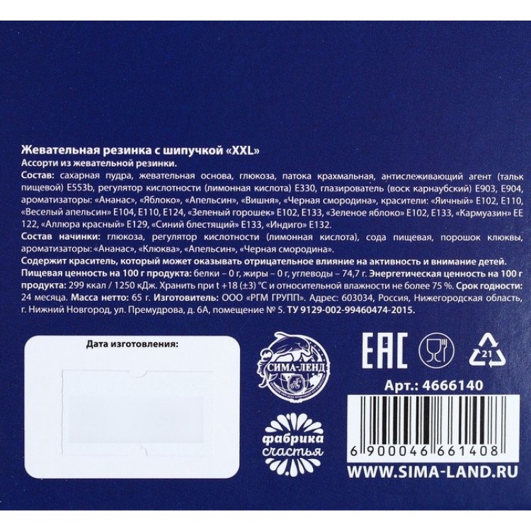 Жевательная резинка с шипучкой «XXL», 65 г. в магазине aromagiya.by ✓Скидка подписчикам инстаграм sladosti_s_prikolom 10% ✈Магазин в ТЦ Силуэт и доставка почтой по РБ. Прямой поставщик, лучшие цены и выбор. Собираем красивые подарочные боксы собственных дизайнов в специально разработанную под сладости упаковку.